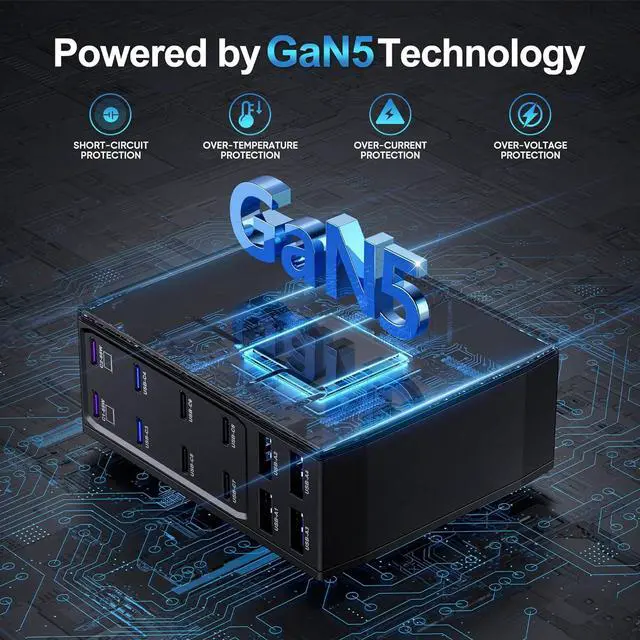 Charging Station: GaN charger offer advantages over traditional chargers featuring a more robust safety protection system. Utilizing IceShield 5.0 Gallium Nitride (GaN) technology protecting against overcharging overheating short circuits overcurrent and overvoltage. Multi built-in protection systems and Advanced chips deliver more efficient charging power and lower heat generation compared to previous-gen GaN technology ensuring device safety and extending its lifespan. Fast & Safe Laptop
