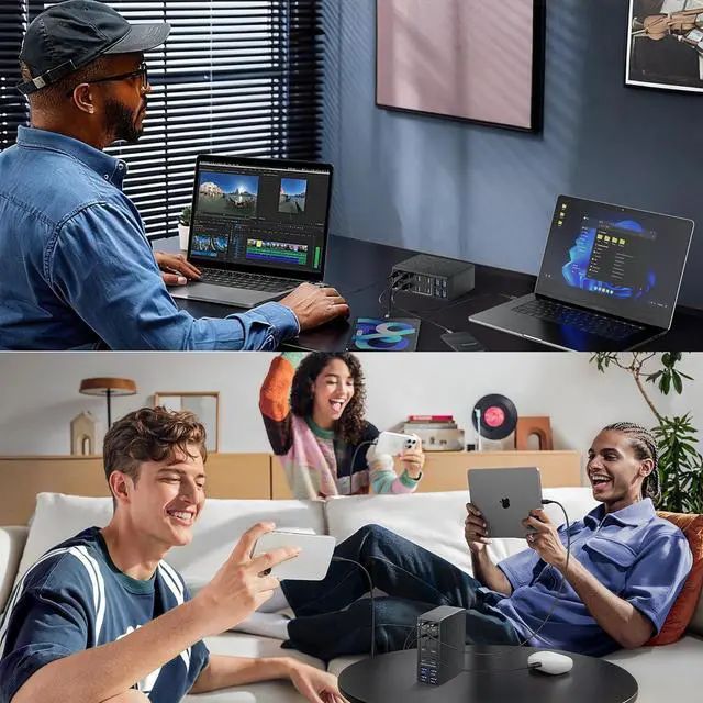 12 in 1 USB C Charging BlockOur usb c charger block features 8 USB-C ports and 4 USB-A ports allowing you to quickly charge up to 12 devices simultaneously. Each port intelligently distributes power to ensure optimal charging efficiency! With so many electronic devices these days this charging station simplifies your charging routine. It's a must-have accessory whether you're at home or in the office. Latest GaN 5