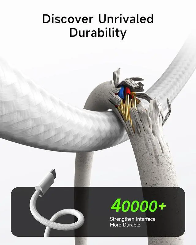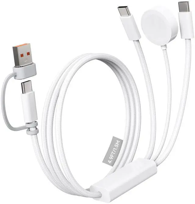 Equipped with a certified E-Marker smart chip it delivers safe stable charging and 480Mbps high-speed data transfer for fast syncing of files photos and videosHigh-Quality & Durable Materials Crafted with a premium nylon braided exterior and sandblasted aluminum alloy connector this multi charging cable withstands over 40 000 bends in lab tests. The unibody plug and laser-welded 3D joints enhance durability. Strong flexible and tangle-resistant it offers a longer lifespan than standard TPE cables perfect for everyday use and travelWide Compatibility & Convenient Length Measuring 4.92 ft ( 1.5 m) this 3-in-1 USB C cable provides the ideal reach for home office or on-the-go use.