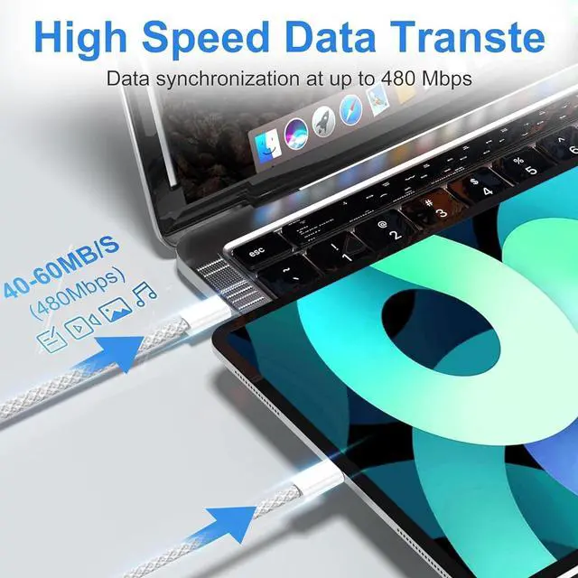Connector + Latest material Upgrade 6.6F t/2M Long Cord High density braided wire Stainless steel housing reinforced jack With USB C Connector to your USB-C port for syncing and charging. Flexible Premium Long Tangle Free USB type C cable. High quality Nylon Braid material makes our USB C cable durable and strong while remaining flexible and tangle-free. The USB to type c fast charging has unique laser welding technology to make the connector prevent from broken. MFi Certified Chip Perfect CompatibilitySupport PD 3.0 protocol and MFi authentication compatible with 15 full fast charging protocols so there will be no pop-up window prompt.