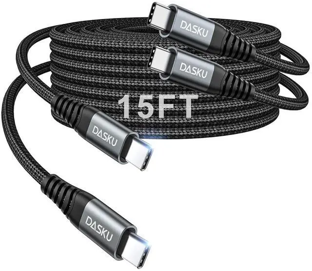 Extra Long USBC Charging Cable100W usbc to usbc fast charging cord is build in the original power delivery E-Mark chip our usbc to usbc cable features a premium braided nylon exterior that resists tangling fraying and daily wear and tear With upgraded aluminum connector and laser welding technology ensure the metal part won't break. C to C Cable Fast Charging 15 FTUSB C to C cable compatible with all USB-C devices including phones tablets and laptops. Such as MacBook Air/Pro iPhone 17/17 Pro/17 Pro Max iPhone 16e/iPhone 16/16 Plus/16 Pro/16 Pro Max iPhone 15/15 Plus/15 Pro/15 Pro Max Galaxy S24 Ultra/S24+/S24/S23 Ultra/S23+/S23/S22 Ultra/S22+/S22/S21 Ultra/S21+/S21/S20/ S20+/S20 Ultra/Note 20 Pixel series iPad Mini 6/iPad Pro/iPad Air Steam Deck Switch and more.