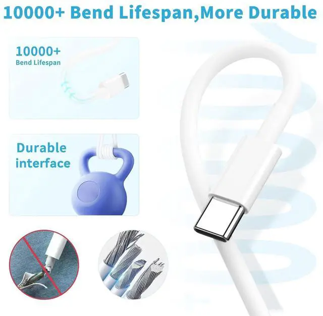 Compatibility with model: 6ft usb c cable widely for iPhone 17/16/15/15 Pro/15 Plus/15 Pro Max. and Our USB C to USB C cable provides high-speed charging for Type-C smartphones tablets and laptops including MacBook Air MacBook Retina 12 inch and MacBook Pro 13 14 15 and 16-inch models released between 2018 and 2023. It also supports all iPad Pro models with 3rd to 6th generation iPad Air 4th and 5th generations iPad Mini 6 iPad 10 Galaxy S23 S23+ S23 Ultra S22 S21 S20 and etc.