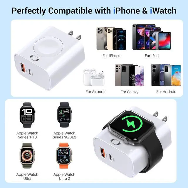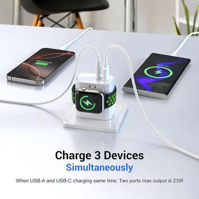 Universal Compatibility: Ideal for Watch Series 11 Watch Series 10 Watch Series 9 Watch Series 8 Watch Series 7 Watch Series SE/Ultra iPhone 17/17 Air/17 Pro/17 Pro Max/16/15/14/13/12 series AirPods and more. Also supports Android phone and USB C & USB-A Devices.