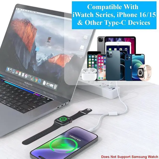 ??????????????????????????? This for iPhone and Watch charger combo is designed for all Watch Series Ultra 2/Ultra/10/9/8/7/6/SE 2/SE/5/4/3/2/1 (38 mm 40 mm 41 mm 42 mm 44 mm 45 mm 46 mm and 49 mm Versions) and iPhone 16/15/Pro/Pro Max/Plus iPad Macbook AirPods 4/Pro/Pro 2/Max Headphones Power banks and more????????????????????????????????????????????????? /?????????????????? Charge 2 devices simultaneously with this convenient phone and watch charger.