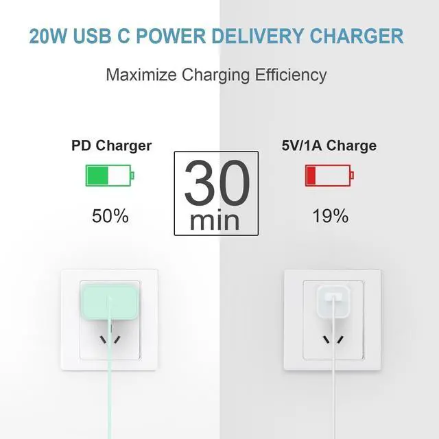 iPhone 17 Charger20W PD USB Type C power delivery wall plug PD adapter 3.0 Quickly Charge USB-C port provides Max 20W output power 3X faster than standard USB charger. charging your up to 50% in just 30 minutes for i Pad Pro Charging At 3A Maximum Helps You Work Efficiently. iPhone 16 ChargerWith the MFi Chip the USB-C to lightning cord equips automatic chip recognition function full support with iOS versions. 20W USB-C Charger Offers Multiple Safeguards Automatically. Multi-Charging Protection Keeps Your Device Safe From Over-Current Over-Voltage Over- Heating & Short-Circuiting. iPhone 15 ChargerThe Power Delivery Wall Charger for iPad iphone owns a built-in multi-protection system avoiding over-voltage over-charge over-heat etc.