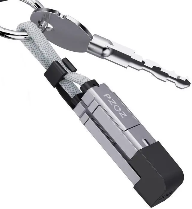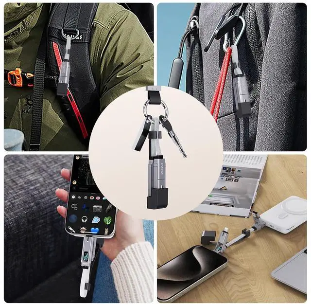Keychain Charger 7.3 inch length ultra lightweight design integrating Lightning USB-C and USB charger cable together portable and easy to use. The cap design allows you to easily snap the heads together and hang it on your keyring or bag. Smart LED DisplayBuilt in intelligent chip displaying charging status and visible charging power at any time.