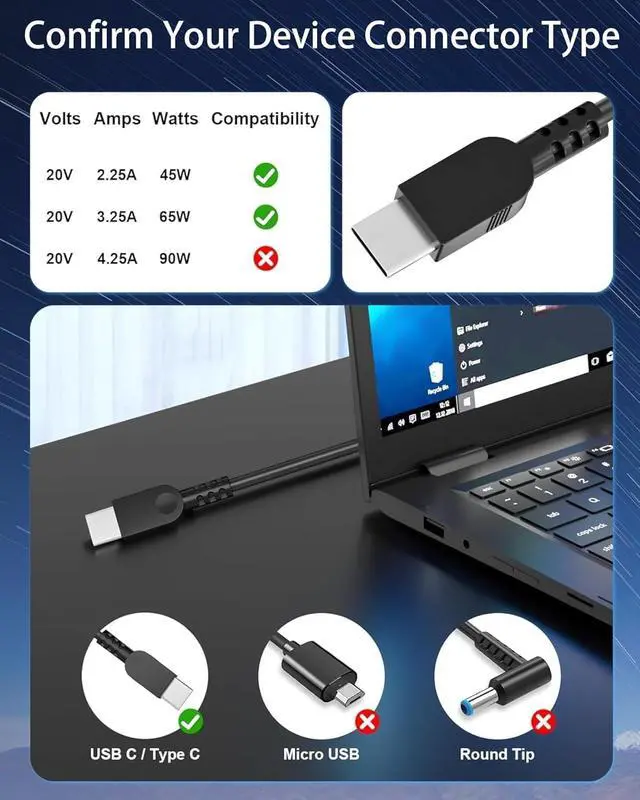 Connector Size: USB Type-CJPEOAYBI 65W USB C Laptop Charger Compatible with Part NumberADLX65YLC2A ADLX65YCC3A ADLX65YLC3A ADLX65YDC3D ADLX65YCC3D ADLX65YLC3D ADLX65YAC3A ADLX65YCC2A ADLX65YAC2A ADLX45YDC2A ADLX45UDCU2A ADLX45YCC2A ADLX45YCC3D ADLX45YLC3D ADLX45YDC3DJPEOAYBI USB C Laptop Charger Compatible with ThinkPad X1 Carbon Gen6 Gen7 Gen8 Gen9 Gen10 Gen11 Gen12 T14 T14s T15 T16 L13 L15 L14 X13 E14 E15 E16 Gen5 Gen6 Gen4 Gen3 Gen2 Gen1 T480 T480s T490 T490s T495s T580 T580s T590 T495S L380 L390 L480 L490 E485 E480 E490 ThinkBook 15 14 X1 LaptopJPEOAYBI Laptop Charger Type C Compatible with Yoga 7i 9i 14 15 2 in 1 S930-13 C730-13 C940-14 C740-14 15 730-13 730S 910 920 730 730s s730 720-13 730-13 730s-13 s730-13 720-13IKB 730-13IKB 730S-13IWL 730S-13IML S730-13IWL S730-13IML Chromebook 100e 300e 500e 2nd Gen C330 C340 S330 S340 S345 C340-11 S340-14 S345-14AST IdeaPad S940 730SAfter