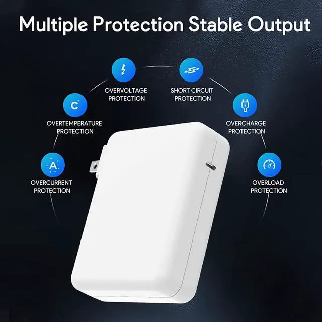 Also compatible with all USB-C type C port laptop cellphone. Wide CompatibilityThe 140W USB C power adapter supports PD 30W/61W/87W/96W/140W output and Compatible with MacBook Pro/Air (13-16 M1-M4 models/iPad Pro/Air ( 10.9 - 12.9 and all PD-enabled devices. Multiple Safety Protection This USB C fast charger features an ultra-compact lightweight design with foldable prongs for maximum portability wherever you go perfect for home office and travel. Moreover the charger is designed with over-current over-voltage over-heating and short-circuit protection etc. to keep you and your devices safe. 6.6 ft USB C to USB C CableOur 140W USB C charger comes with a 2M/ 6.6 ft 140W USB C to USB C cable.