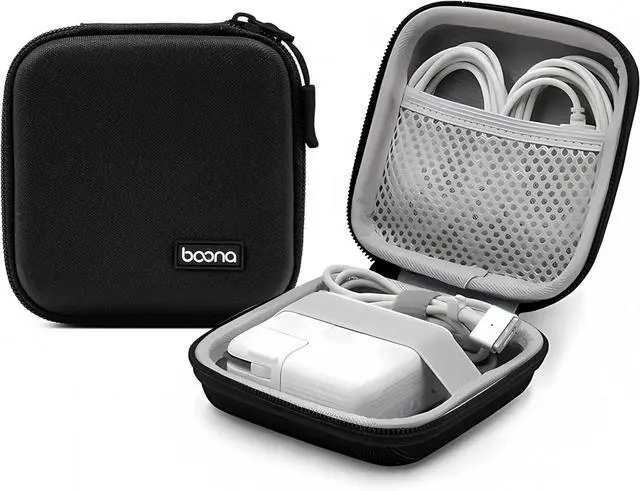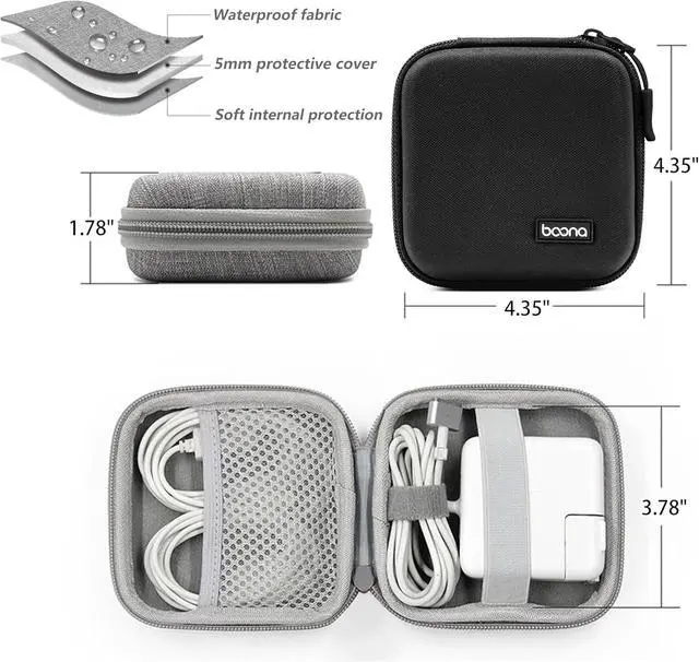 SMALL STORAGE BAGCompact Tech Bag to keep your MacBook charger and loose cables neatly organized. This electronic accessories travel organizer bag has enough room for electronic gadgets such as earbuds charging cords blocks power bank hard drives mouse earphone flash drives SD cards wall charger adapters and more. HIGH-QUALITY MATERIALThis power storage bag is made of durable and waterproof EVA with an excellent mesh pocket and anti slip grip elastic ring inside to ensure that the rope is fixed in place. The travel storage bag is sealed with a high-quality zipper for quick access and management.