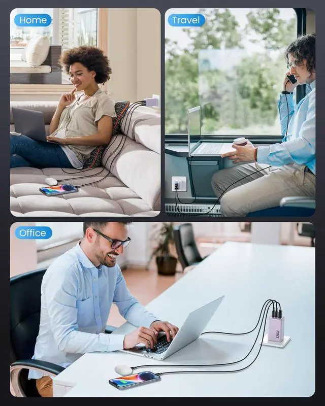 (PS: When multiple devices are connected the charger needs to select the correct fast charging protocol and will disconnect 2-3 times before entering fast charging as a safety measure. )Efficient Charging & Wide CompatibilityThis 3 Port GaN III charger is able to charge 1 laptops and 2 smartphones/tablets at the same time. All ports support (quick charge) agreement its compatible for MacBook Pro/Air iPhone 17 iPhone 16 iPhone 15 or previous models iPad Pro/Air Galaxy S10 or previous models Google Pixel XPS Switch and more. Latest GAN III Chip Technology The USB C charger adopted GaN III generation chip technology built-in multi-protection system and premium microchips. With higher energy efficiency and upgraded heat dissipation Gallium Nitride (GaN) makes our chargers smaller and safer without sacrificing a drop of power. Built-in overcharge protection overheating protection short circuit protection over-current protection over-voltage protection.