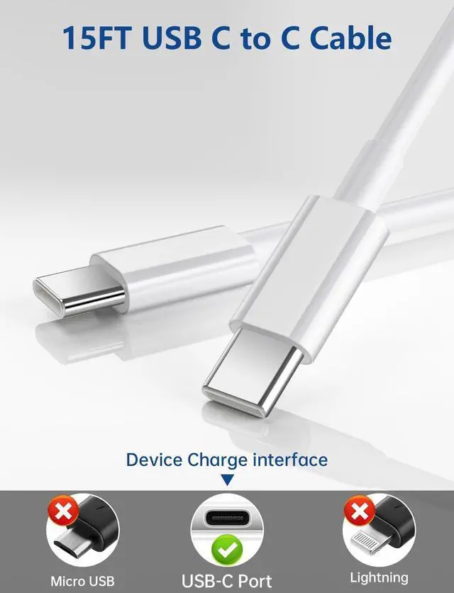 C Cord: One Cable for All Your USB-C Gadgets?? ---- This 15ft USB-C to USB-C Cable isnt just for phonesits your all-in-one solution for charging and syncing every USB-C device. Whether youre powering up your iPhone 17/16/15 Galaxy S25/S24/S23 Google Pixel or even your MacBook Pro/Air iPad Pro/Air or Chromebook this universal C to C Cord has you covered. No more juggling multiple cablesthis single long C to C Cord works with laptops tablets phones wireless chargers and accessories simplifying your desk bag or travel setup2-Year Warranty + 24/7