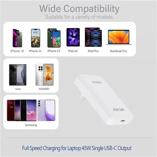 High-Speed Charging: Equipped with a single Type-C port it delivers up to 45W fast charging quickly powering up smartphones tablets laptops and other devices.