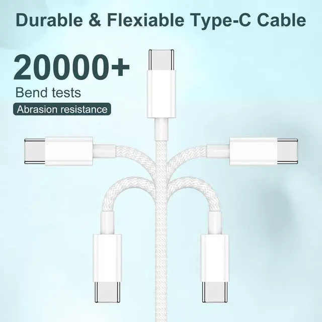 iPhone 17/16/15 60W Fast Charging cableThis iphone 17/16/15 pro usb c to type c cable support PD 3.0 /QC 3.0 /QC 4.0 fast charging up to 60W charging. suit with USB-C adapters such as 18W/30W/45W/60W. charges iPhone 17/16/15 USB C Phone from to 60% within about 35 minutes Improve iPhone 17/16/15 series charging efficiency and save time. and data transfer speeds up to 480Mbps (200 songs synced per minute) compatible with iPhone 17/16/15 iPad Air Mini Pro Macbook and More. many Protection USB C PortUSB to USB C Cable has electronic safety certifications that comply with appropriate standards it built-in laser welding technology which ensure the metal part won't break.