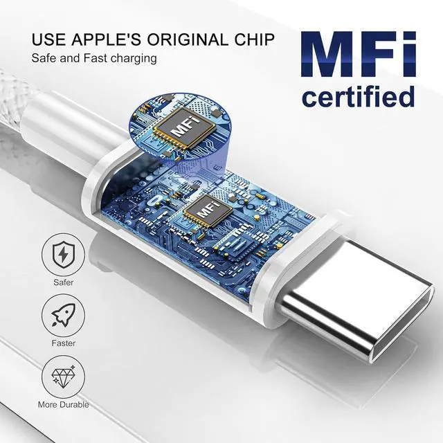 USB-C to USB-C Compatibility for iPhone 17 Family Made for iPhone 17 / 17 Pro Max / 17 Air plus iPad Pro/Air (USB-C) MacBook Air/Pro power banks and USB-C chargers and hubs. Smart-Chip Safety & 480Mbps Data Built-in chip protects against over-voltage over-current and over-heat; stable 480Mbps USB 2.0 sync for file transfer and firmware updates.