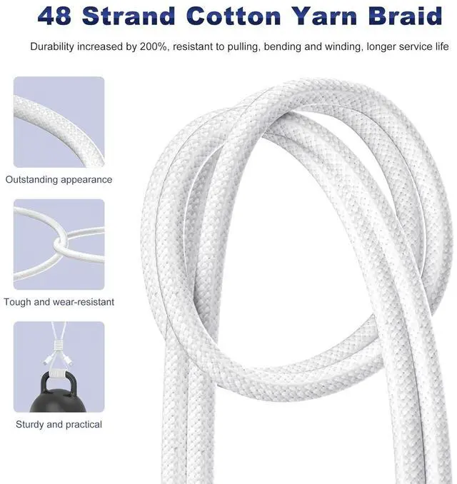 3 / AirPods 4 Charger Cable (USB-C) 6FT braided USB-C to USB-C charging cord built for the newest USB-C charging cases; plug straight into your USB-C charger/power bank; also works with 2 (USB-C). 60W USB-C PD 3.0 Fast Charging Up to 20V/3A with PD 3.0 & QC 3.0 support for stable efficient fast-charge; ideal for iPhone 17 / 17 Pro Max / 17 Air and other USB-C phones/tablets. 6FT Braided USB-C Cable Tangle-Free Durable nylon-braided jacket + reinforced strain-reliefs; flexible soft and tough for everyday use; tested 15 000+ bends for long-lasting performance.