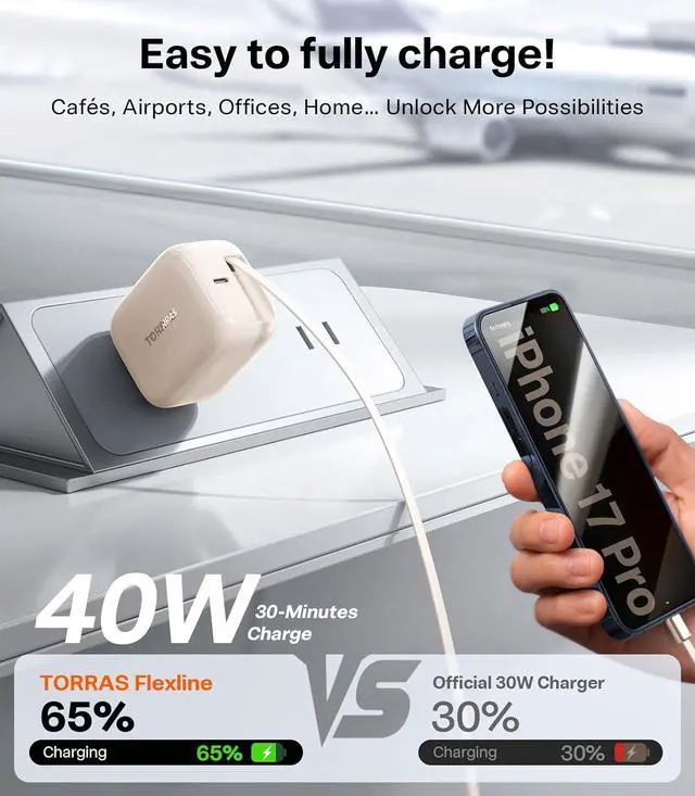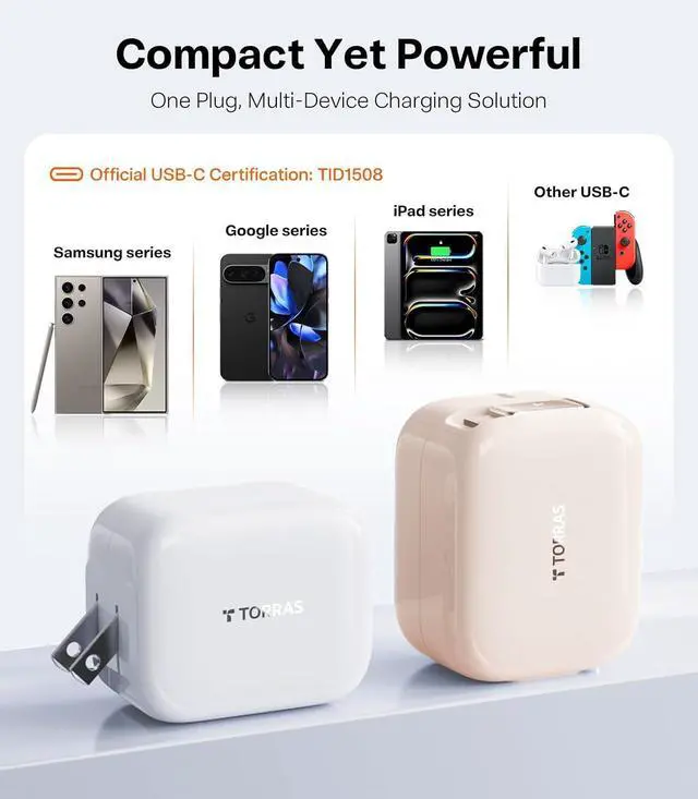 USB C Charger: Retractable Cable Pull and Charge! Charging is now more convenient and fun! Compatible Devices This charger is compatible with a wide range of phones and computer devices including the Galaxy S25 charger iPhone 16 charger iPad Pro 11 iPad Air MacBook Air M1/M2 MacBook Pro 13 and more. Need an iPhone 16e charger? This versatile adapter ensures seamless fast charging for your device. Enjoy 40W fast charging for all your gadgets! Retractable Cable Ready to Use The 0.68 -meter retractable Type-C cable is easy to pull out allowing you to charge anytime without worrying about tangled cables. Its also incredibly easy to store! Whether you're using it as a charger for iPhone 16e or for other devices this compact design keeps your space neat. The iPhone 16e charger block similar in size to AirPods makes it super portableperfect for travel! Worldwide Compatibility Endless Power Whether youre in New York or Paris the USB C charger block is compatible with global voltages (100-240V) ensuring your devices are always powered up. Looking for an iPhone charger 16e that works anywhere? This ones got you covered. The world is vasttake it with you and start your journey anytime! (Note: In some regions like Europe although voltage is compatible the plug shape may vary. We recommend carrying the appropriate adapter. )Dual-Port Design Double the Charging Efficiency One charger two devices charging at the same time! Enjoy 40W single-port fast charging or 20W + 20W dual-port fast charginglighten your backpack and double your charging efficiency. Whether you need an iPhone 16e charger fast charging solution or a reliable power source for multiple devices this compact powerhouse delivers! Fast Charging Stay Cool Thanks to GaN technology and the Tora-Ice cooling system the Type C charger fast charging stays cool even under intense charging conditions. Charge up to 65% in just 30 minutes offering rapid power-ups without overheatingsafe and reliable! Globally Trusted Worry-Free UseWith 12 years of innovation history and 600 million users trust FCC UL and TUV certifications ensure a safe charging experience. Enjoy 18 months of warranty and feel free to contact us if you encounter any issueswe are always here to help!