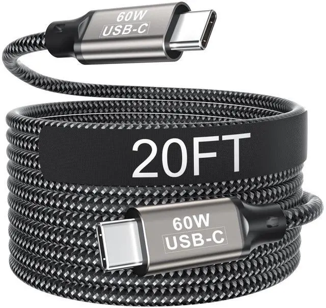 Enhanced Durability USB-C to USB-C cable with Ultra Superior Nylon Braided TPE jacket Aluminum housing and firm metal connectors which makes the usb c cable wear resistance more flexible and durable excellent resistance to twisting and abrasion which can bear 35000+ bending test and 30000+ plug test. Safe & High-Quality This USB-C cable has safety certification you have no need to worry about this cable quality at all. Upgraded 3D aluminum connector and exclusive laser welding technology which to ensure the metal part won't break. Wide Compatibility We provide 1-Pack 20FT Nylon Braided USB Type-C Cable.