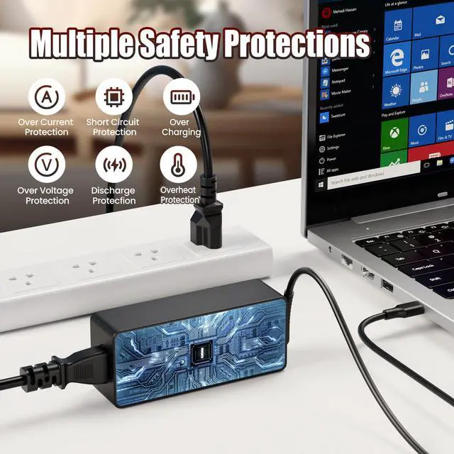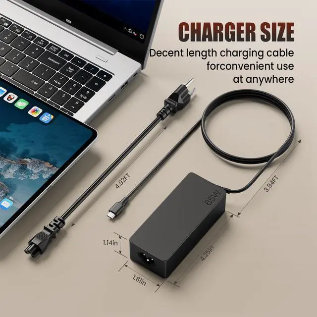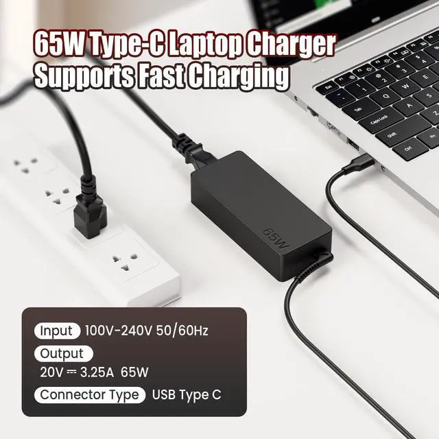 • 65W USB C Charger AC Power Adapter compatible with various Chromebook and laptop models, ensuring wide compatibility.