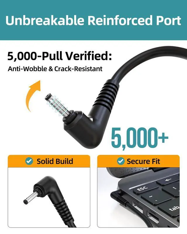 Durable Connection, Built for Daily Use - We know how frustrating it is when your charger breaks mid-semester or comes loose while you're working. That's why we reinforced the connector and tested it for real-life use so you get a tight, secure fit and longer-lasting durability. Whether you're learning, working, or traveling, this adapter is built to keep up with you.