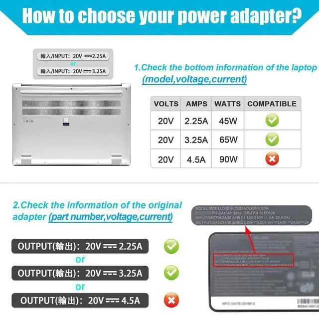• Compatible P/N: Replacement for Lenovo ADP-65FD B, PA-1650-72, ADLX65NDT3A, 0A36258, ADLX65NLC3A, ADLX65NDC3A, ADLX65SLC2A.