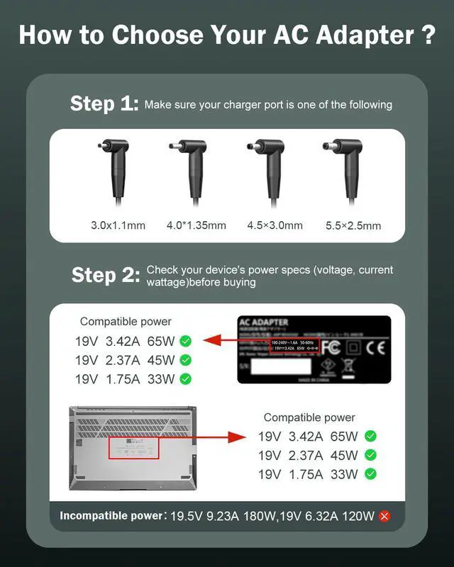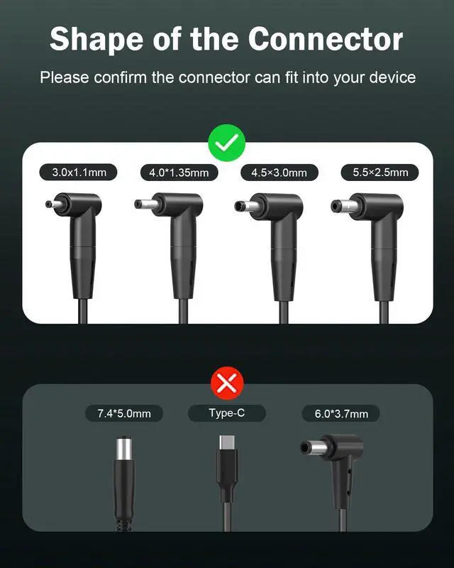 Flawless Compatibility --- Exclusively designed switchable round connectors are suitable for devices such as vivobook, zenbook, chromebook, transformer, eeebook, and imaginebook, meeting the needs of devices requiring 65W, 45W, and 33W with round power connectors. (Not compatible with USB-C, 7.4*5.0mm, 6.0*3.7mm connectors - Please check our images to confirm the compatible connector)