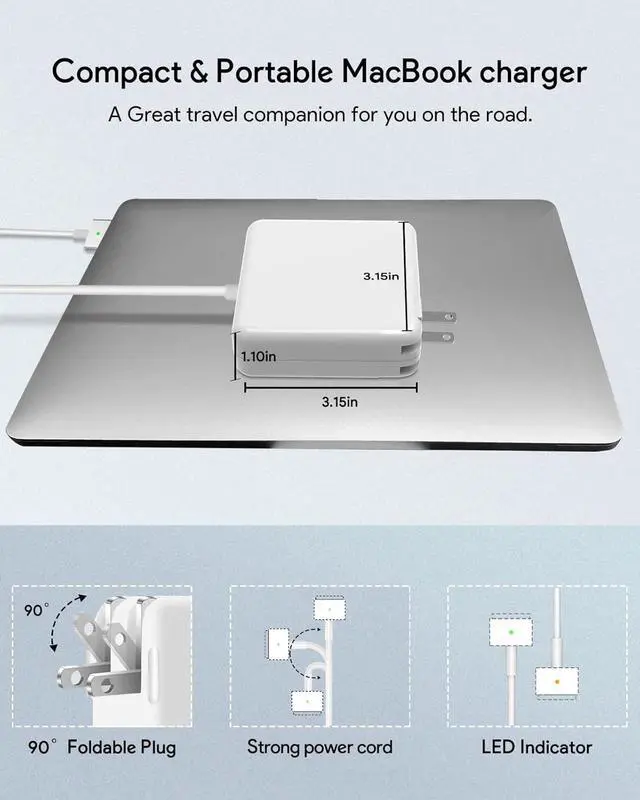 Magnetic T-TipThe laptop charger features a T-Tip magnetic connector that helps guide the plug into the system easily, offering a quick and secure connection. The cord can disconnect harmlessly if subjected to excessive strain, ensuring your Mac Book Pro stays in place safely.