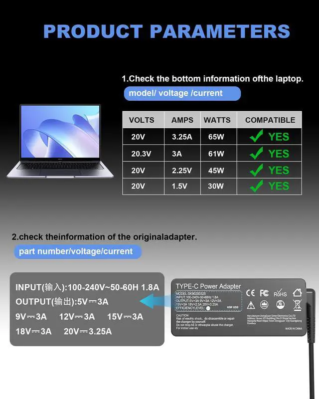 • Compatible With DellCompatible with Latitude 5330 5430 5440 5540 5530 7430 7340 7440 7530 7640 7330 9430 E5430 3440 3540 e5440 Charger, Compatible with Chromebook 3110 2 in 1 Charger, Compatible with Inspiron 13 5320 2 in 1 14 7420 2 in
