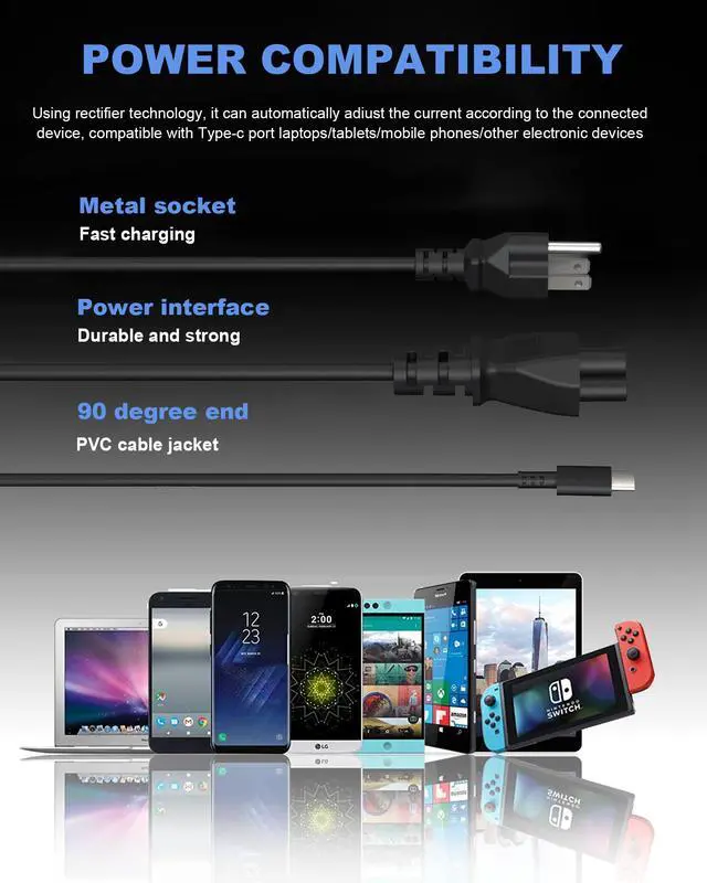 Universal 45W 65W USB C Computer Laptop Charger Type C Compatible With Chromebook Charger USB-C, Power Adapter Cord