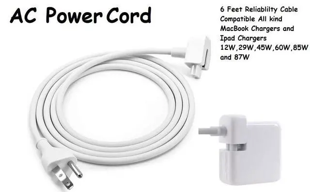 New extension AC power cord for 45W, 60W, 85W, 61W, 87W power adapters (MagSafe or MagSafe 2 models).