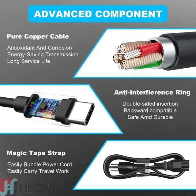 65W 60W USB Type C Charger Compatible with Laptop Latitude 5540 5440 7440 5450 e5430 5430 5530 7430 3450 5550 5350 7450 5420 7420 5520 e5440 Power Cord, Computer AC Adapter