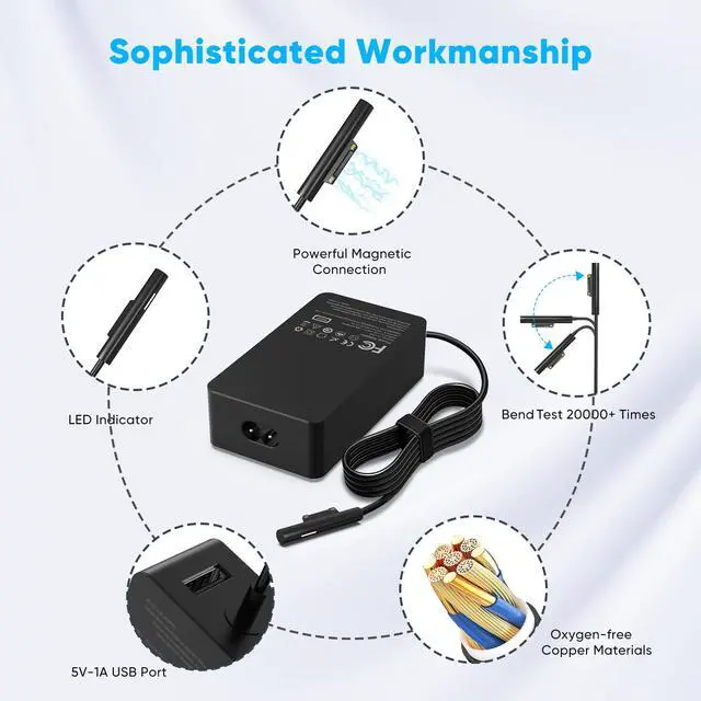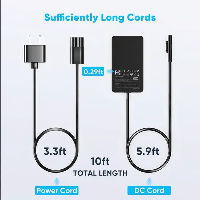 Wide Compatibility: This 65W charger is compatible with multiple models including Surface Pro 10, 9, 8, 7+, 7, 6, 5, 4, 3, and X; Surface Laptop 6, 5, 4, 3, 2, 1, Studio; Surface Book 3, 2, 1; Surface Go 3, 2, 1.