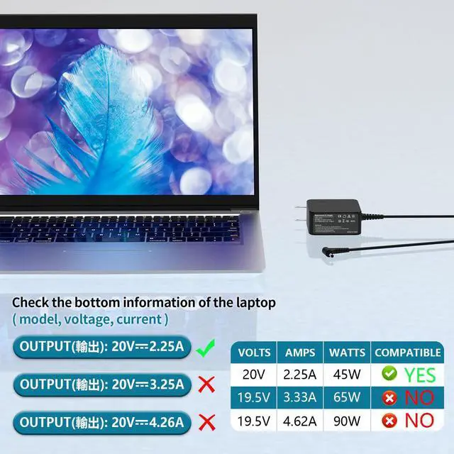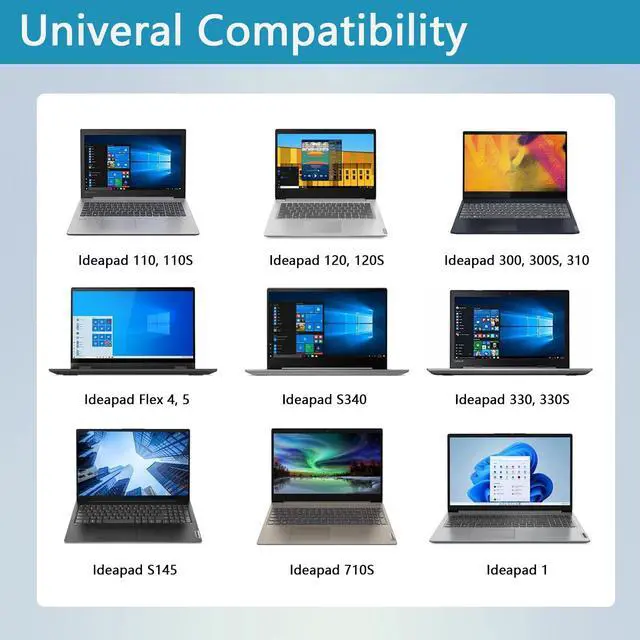 Compatible with Ideapad 100 100S Series 100-15IBD (not compatible with 100S-11IBY); Ideapad 110 110S Series 100S-14IBR 110-15ACL 110-15ISK 110-15IBR (80T7); Ideapad 120 120S Series; Ideapad S145 Series S145-15AST S145-15API, S145-15IWL; IdeaPad 310 320 320S 330 330S 510 520 710S Series; Yoga 710 Series 710-15ISK; Flex 4 Flex 5 1470; Compatible Part numbers ADP-45DW BA ADP-45DW C ADL45WCC PA-1450-55LL 80TJ 81N3 81H5 81VS 81WA 81SS and others