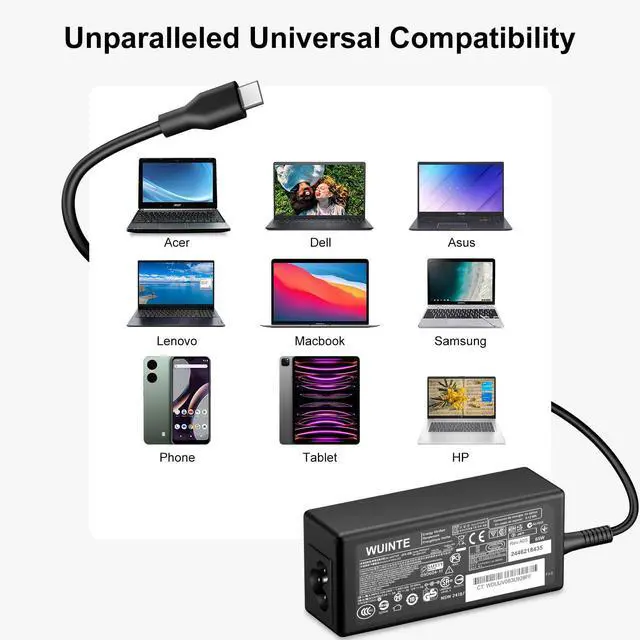 COMPATIBILITY - 65W USB C Chromebook charger compatible with acer chromebook spin 11 13 15, lenovo chromebook, Hp chromebook 14 x360, 45w dell Latitude /Chromebook, asus chromebook, 45w samsung fast charger