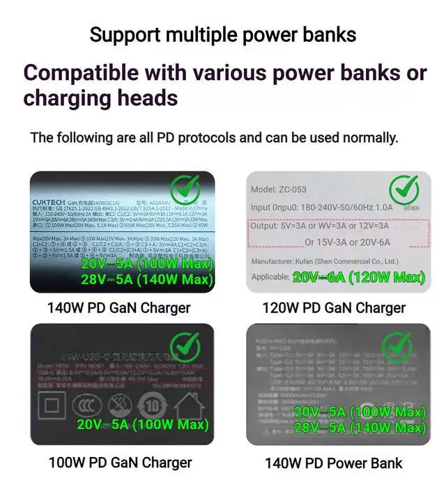 Premium Material: The shell is made of zinc alloy and the interface is nickel-plated for excellent oxidation resistance and durability with rapid heat dissipation. Built-in PD smart chip supports up to 100W fast charging.