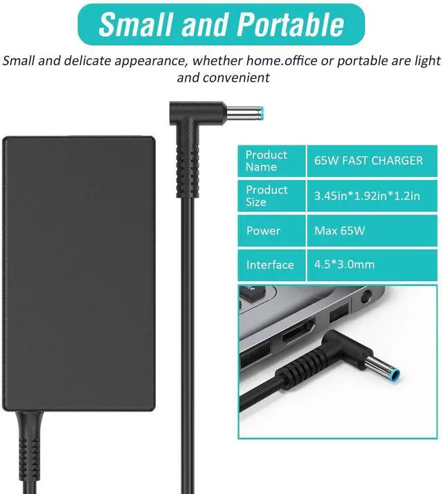 Input: 100-240V, 50-60Hz; Output: 19.5V 3.33A 65W (Compatible With 19.5V 2.31A 45W); Connector Size: 4.5*3.0mm blue tip