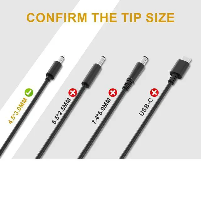 • Specification: Input: 100-240V-1.8A 50/60Hz Output: 19.5V-3.34A-65W Connector Size: 4.5*3.0mm (Not fit for Type C and 7.4mm*5.0mm)