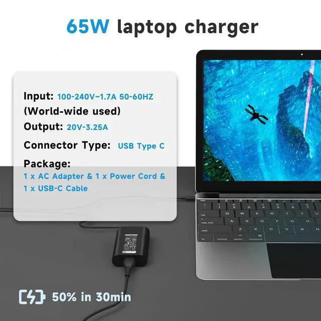 • Output: 5V-3A, 9V-3A, 12V-3A, 15V-3A, 18V-2.5A, 20V-3.25A USB Type-C (USB-C) Laptop Charger.