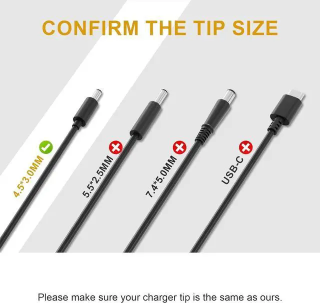 • Connector Size: 4.5 mm*3.0 mm (Not Fit for Type C and 7.4mm*5.0mm)