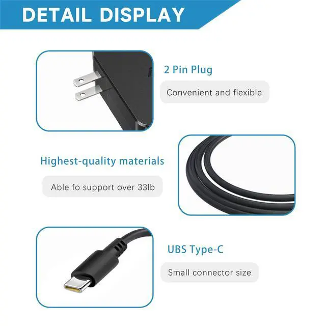 • 65W USB-C Fast laptop Charger Supports USB-C PD fast charging with max 65W output (20V/3.25A)