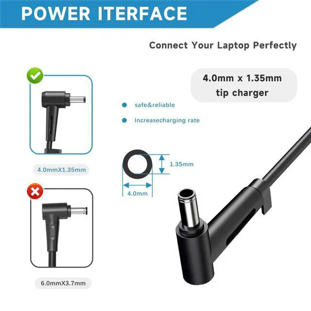 • Designed for laptops utilizing round connectors with power requirements of 45W and 33W.