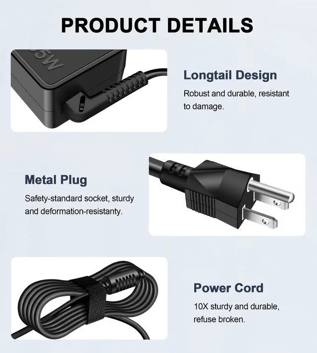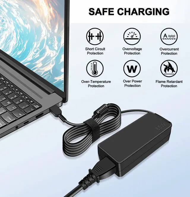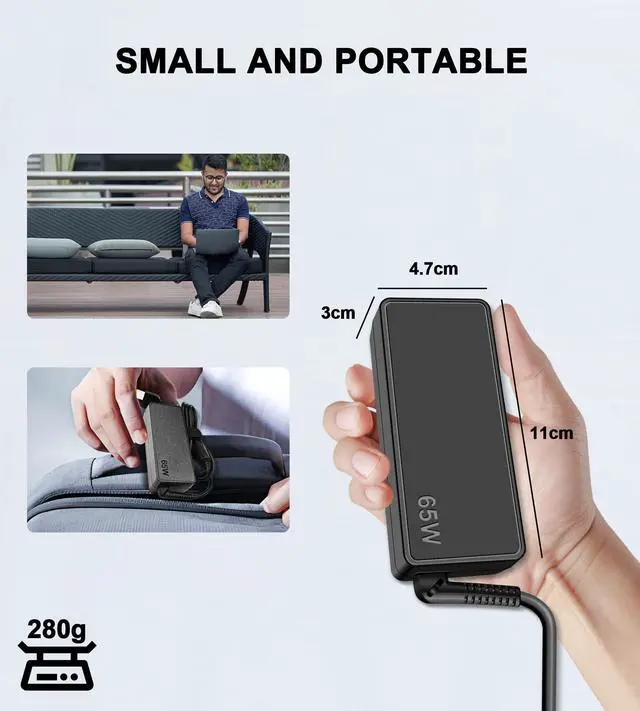 Portability: The 65W laptop charger can serve as a backup. It can be easily carried in a bag and used when going to work, on a business trip, or while traveling.