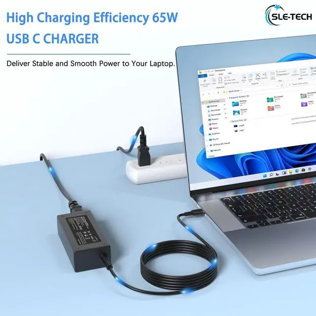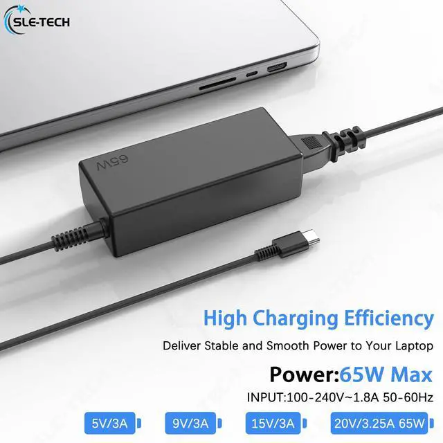 Input: 100-240V~1.6A 50-60Hz Output: 5V-3A or 9V-3A or 15V-3A or 20V-3.25A Watts: 65W TYPE-C, compatible with various USB C laptops.