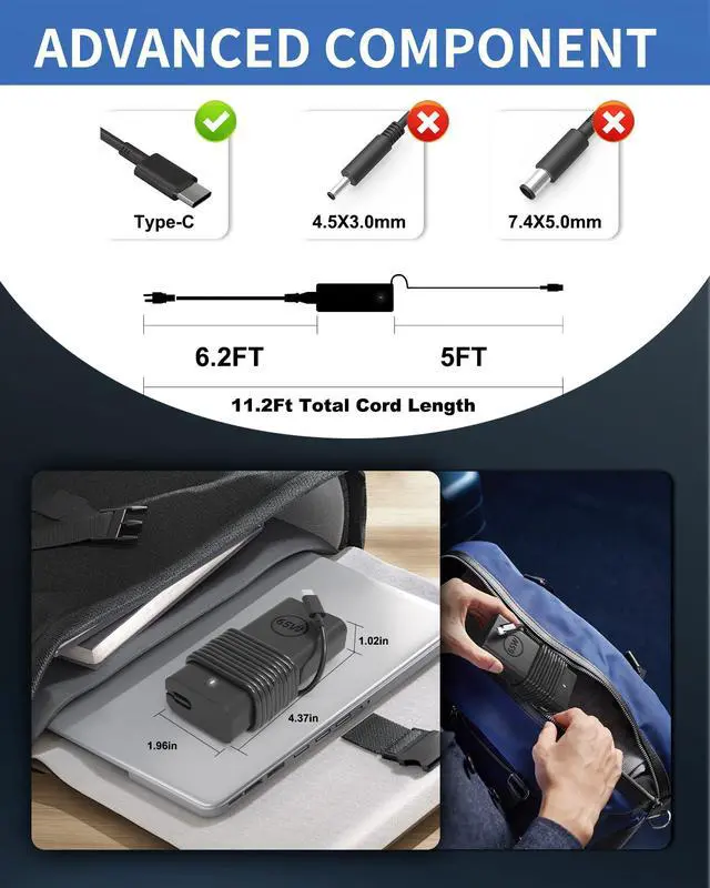Compact & Portable DesignThis 65W USB-C laptop charger is small, lightweight, and travel-friendly. It features built-in multi-protection (over-charge, over-voltage, over-current, over-temperature, short-circuit) for safe charging.