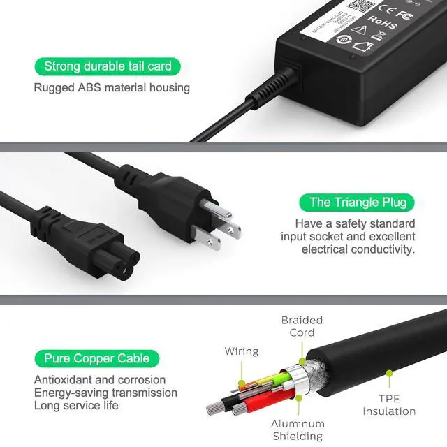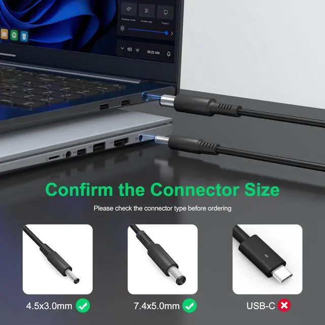 WHAT YOU GET: 1 x 65W Laptop Charger with 4.5mm x 3.0mm + 7.4mm x 5.0mm Connectors; each product has been rigorously tested for performance against overvoltage and short circuit protection.