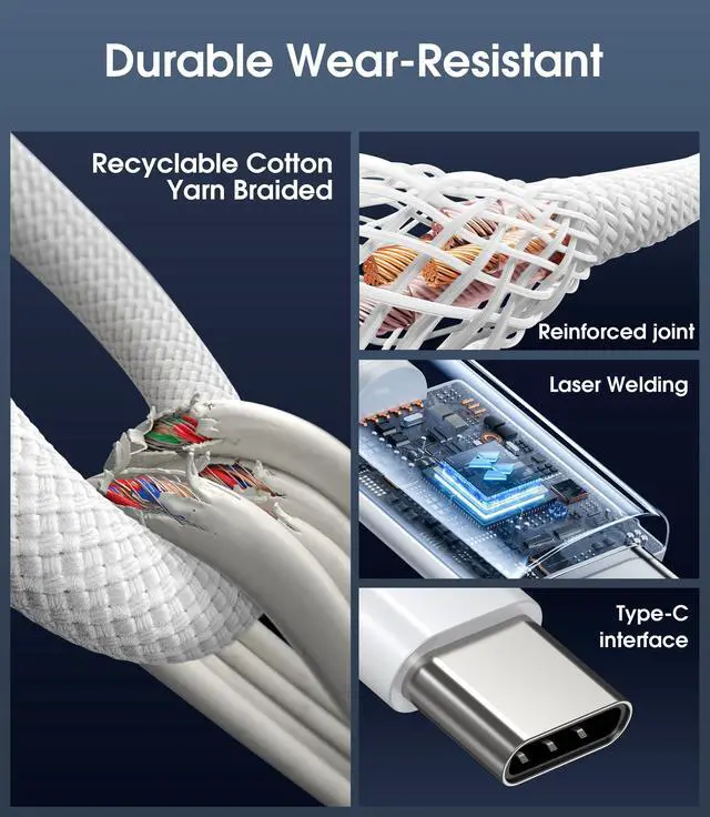 Durable & Portable Design: Crafted from high-quality thickened copper wire with a soft-touch TPE coating, this charger has passed over 20,000 bending tests. It comes with a 6.6 feet long USB-C to USB-C fast charging cable, suitable for various scenarios (e.g., home, office, travel, etc.). The built-in folding plug design makes it easy to carry while protecting the screen from scratches.
