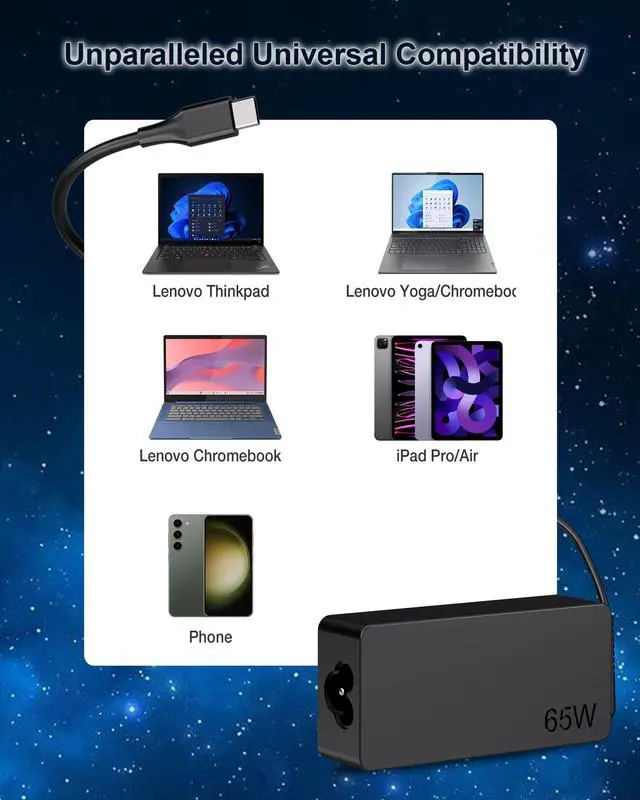 Replacement 65W USB C Charger, fit for Thinkpad/Yoga/Chromebook Laptop, T480 T480S C930 C940 100e 300e 500e ADLX65YDC2A ADLX65YLC3D 4X20M26268, 65W 45W