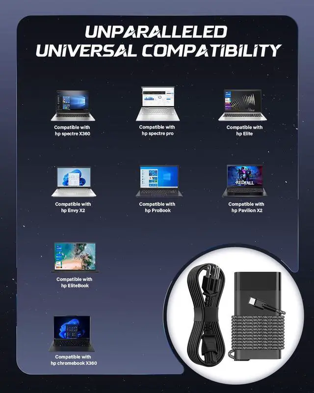 Compatibility: 65W USB-C Power Adapter compatible with a wide range of devices including various Chromebook series, EliteBook models, and more. Provides fast, reliable 65W Power Delivery charging, ensuring safe and efficient performance. Built-in protection against over-voltage, over-current, short-circuit, and overheating keeps your device powered securely at home, office, or on the go.