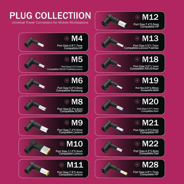 Universal Compatibility: The smart chip automatically adjusts the voltage. With 15 included tips, this adapter works with most laptops on the market. Simply find the tip that fits your device, and you're ready to go.