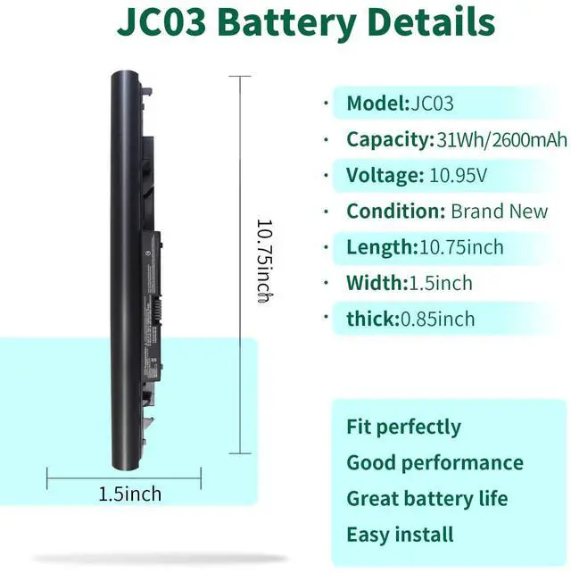 Quality and Certification: The JC03 battery replacement is highly compatible with the 919700-850 laptop battery and meets CE/FCC/ROHS/UL certified standards. It is a brand-new product from the manufacturer and supports up to 1000 recharge cycles.