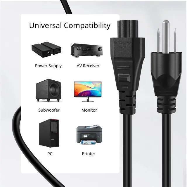 Universal Power Cord (6 Feet) - IEC320 C5 to NEMA 5-15P 3-Prong Power Extension Cable Wire Connector Socket Plug Jack for Laptop Notebook AC Power Supply Adapter Charger Wall Outlet